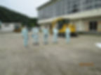 都間土建からは34名が参加して、駐車場にて15分間の体操をしました。